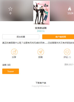 变美的法则 2025-06-10 15:55 韩国漫画 2025-06-10 15:55 开始阅读 微信阅读 简介:《变美的法则》漫画讲述:为了探讨真正的美丽是什么,无忧无虑的死神和迷糊冒失的美之女神降临凡间,与天地间最为帅气的男子,拍摄一部充满青春气息的公路电影【微信搜索: 标签: 韩国漫画 上一篇:变美app:丑女逆袭法则 下一篇:变你马的狐狸精 相关漫画 永恒符文 月坠重明 钻石王牌 act2 超次元反击 皇帝中二病 稗官协会的日常 老基门 妖王的报恩 禁止同类 江户前精灵